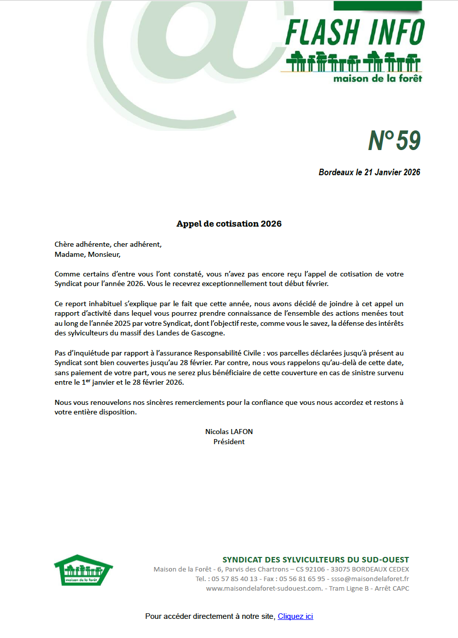 Maison de la forêt | Flash@Info : Appel de cotisation 2026